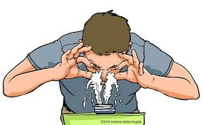 2. Irrigación Inicial: Dirígete a una estación de lavaojos (obligatoria en áreas de riesgo per AIDER). Si no hay, usa ducha o agua potable abundante, tibia (no fría para evitar vasoconstricción).
